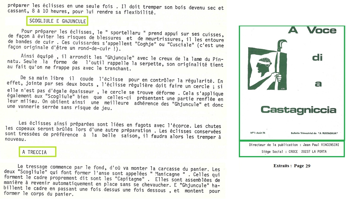 SPORTA et SPURTELLU - association : "A RUSTAGHJA" Bulletin N°1 - Août 1974 "
